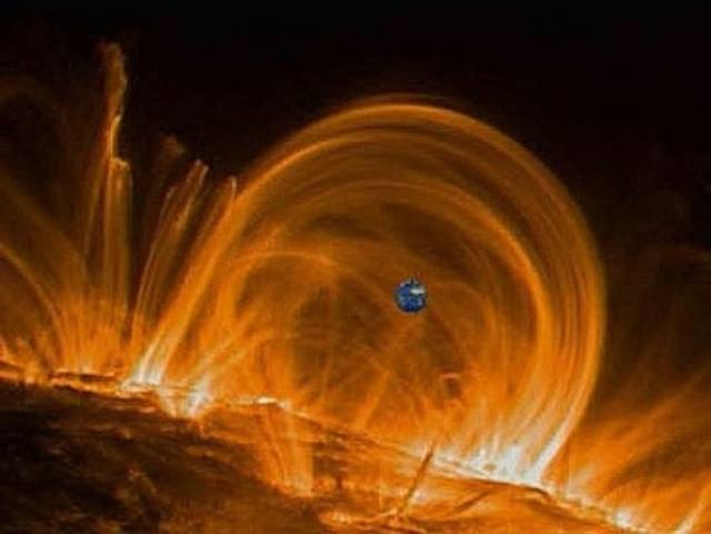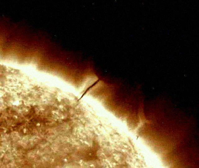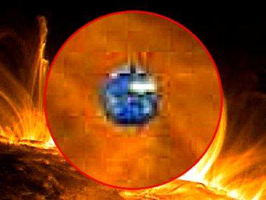 Снимок НАСА, на котором вместе с протуберанцы изображен круглый звездолет.
