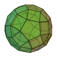 Ромбоикосододекаэдр — полуправильный многогранник, состоящий из 12 правильных пятиугольников, 30 квадратов и 20 треугольников. Имеет икосаэдрический тип симметрии. В каждой из вершин сходятся треугольник, пятиугольник и 2 квадрата.