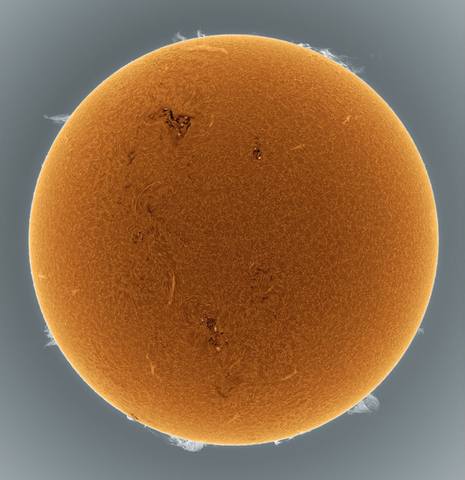 Фото спокойного солнца, титановые шары умело заретушированы правообладателями в Фотошопе.