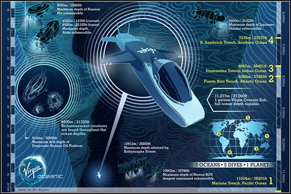 Удивительное дело, но всего около 5% Мирового океана исследовано людьми. И при этом вода занимает более 70% от поверхности земного шара. К тому же лишь 10% от всех живых организмов живут над водой, остальные же – под ней. То есть мы вообще слабо знаем свою планету, хотя уже стремимся узнать другие. Вот этот недостаток и решила устранить корпорация Virgin.