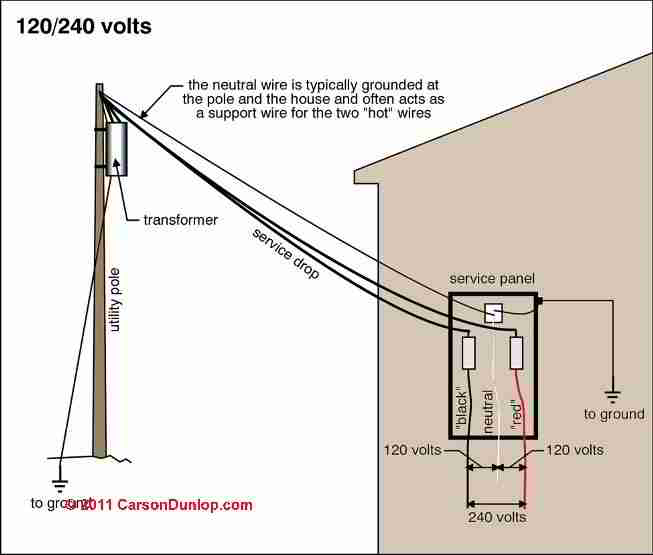 Я чето зарапортовался с фазами. К дому подходит 240В со средним проводом от ближайшего трансформатора (один на несколько домов - все линии передач есть высоковольтные). Отот средний и есть ноль. Он белый. А крайние с потенциалом 240 - черный и красный.
