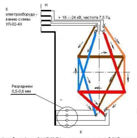Второе препятствие =нужно огромное 30-70 квольт. напряжение. Никаких генераторов 7и6 гц не надо. Это заблуждение, что поле земли на этой частоте будет резонировать с Вашим аппаратом. Потому что Земля не имее никаких излучений ни на этой ни на др. частотах Поэтому берите высокое постоянное. Можно с телевизора. С анода кинескопа. Далее. непонятны искровики. Они только как помехи окружающим в радиусе 200м, ничего не дадут. Далее, вентиляторы-- по -моему Вы хотите подвесить их снизу и с верху. Вентиляторы тоже ничего Вам не дадут. Только по типу движетеля дережабля, а нужны ли двигатели устройству, которое не поднимется больше 1.5 метра.По моему не нужны , да и утяжелят конструкцию Кстати конструкция Ваша ничего общего не имеет с ионолетом, как утверждал пред. оратор.Там сов. другой . принцип-испускание ионов с игл днища - за счет этого .
