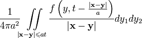 Картинка - для общего случая волнового уравнения. В нашем случае a - это скорость света, f - вынуждающее воздействие (то что стоит в правой части написанных выше волновых уравнений). Да, и еще в нем не хватает dy_3