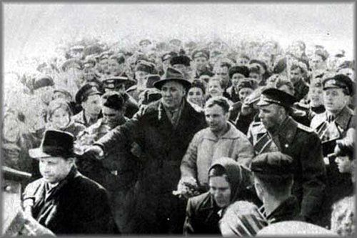 В городе Ногинск Московской области.  Ордер на квартиру на руки дали 8 апреля, а переезд из барачной коммуналки в отдельную квартиру был рано утром 12 апреля. Заселение в новый дом было массовым - сразу много семей. До обеда переехали, моя бабушка распаковывала потом тюки с вещами в новой квартире. После обеда вышла во двор нового дома и ничего не поняла - утром все было нормально, а в обед все уже пьяные, танцуют и целуются. Она спрашивает - что случилось? Ей говорят - Гагарин в космос полетел!.