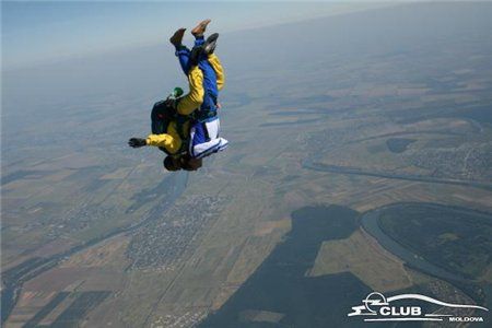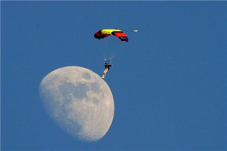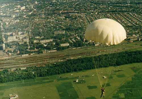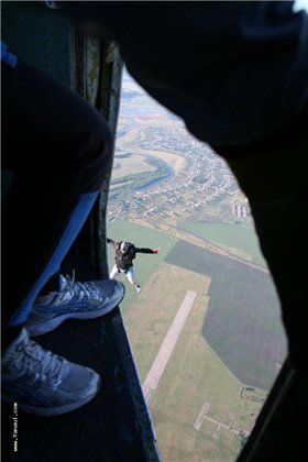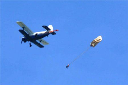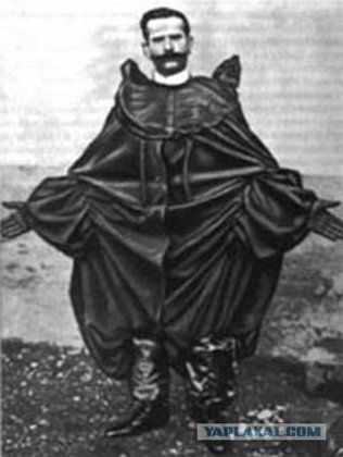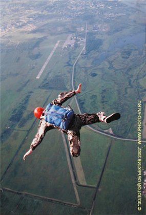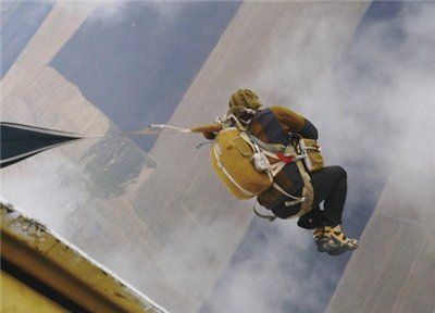 одел параплащ (или плащешют) на себя и спрыгнул вниз. Что-то