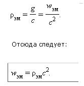 2.Это же верно и для электромагнитного импульса "Наличие электромагнитного импульса позволяет ввести понятие электромагнитной массы. Для поля в единичном объеме:
