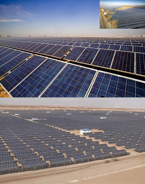 Только недавно крупнейшей в мире солнечной электростанцией на основе фотовольтаики была канадская Sarnia с 97 мегаваттами установленной мощности, но в минувшем году её сместили с пьедестала украинский солнечный парк «Перово» на 100 МВт (снимки вверху) и китайский комплекс Huanghe Hydropower Golmud Solar Park на 200 МВт (кадр внизу)