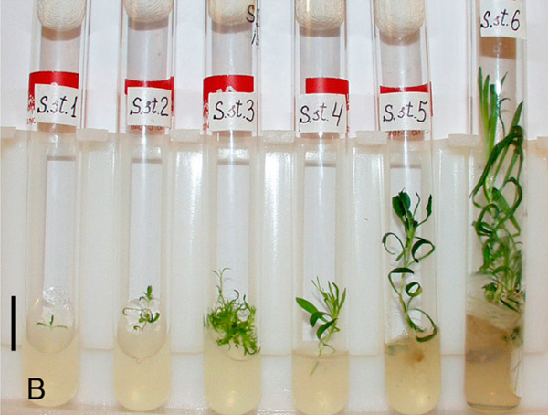 Ученые создали культуры из трех разных семечек для сравнения. Далее делящиеся клетки поместили в специальную среду с точно подобранным набором растительных гормонов. Под действием гормонов начался органогенез и появились корешки, а после перенесения растений на свет образовался хлорофилл и первые стебельки с листиками. Дождавшись листиков, растения пересадили в горшочки и поместили в оранжерею с подходящими условиями. Теперь осталось только наблюдать, как зацветают растения.
