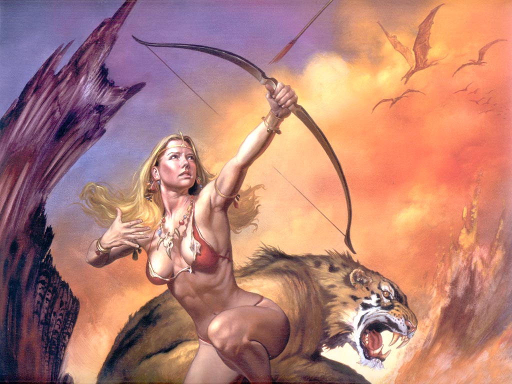 У дамочки на картинке лук после выстрела. Попробуйте стрельнуть из лука так, как нарисовано (тетива с другой стороны руки) :lol:
