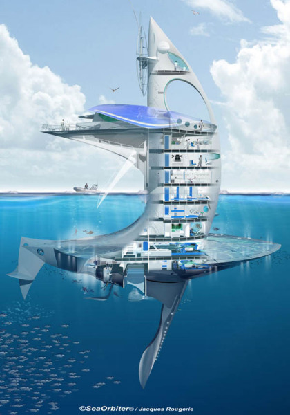 ЦитироватьSeaOrbiter – уникальный новаторский проект, созданный французским архитектором Жаком Ружери (Jacques Rougerie). Строительство вертикального центра океанических исследований начнется уже в конце 2012 года.