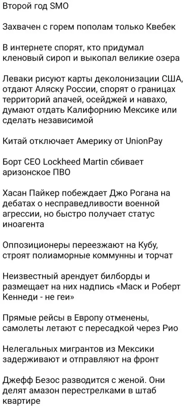Цитата: Шамс от 11.01.2025 01:55:23Второй год Special Military Operation в Канаде (с) Бочаров