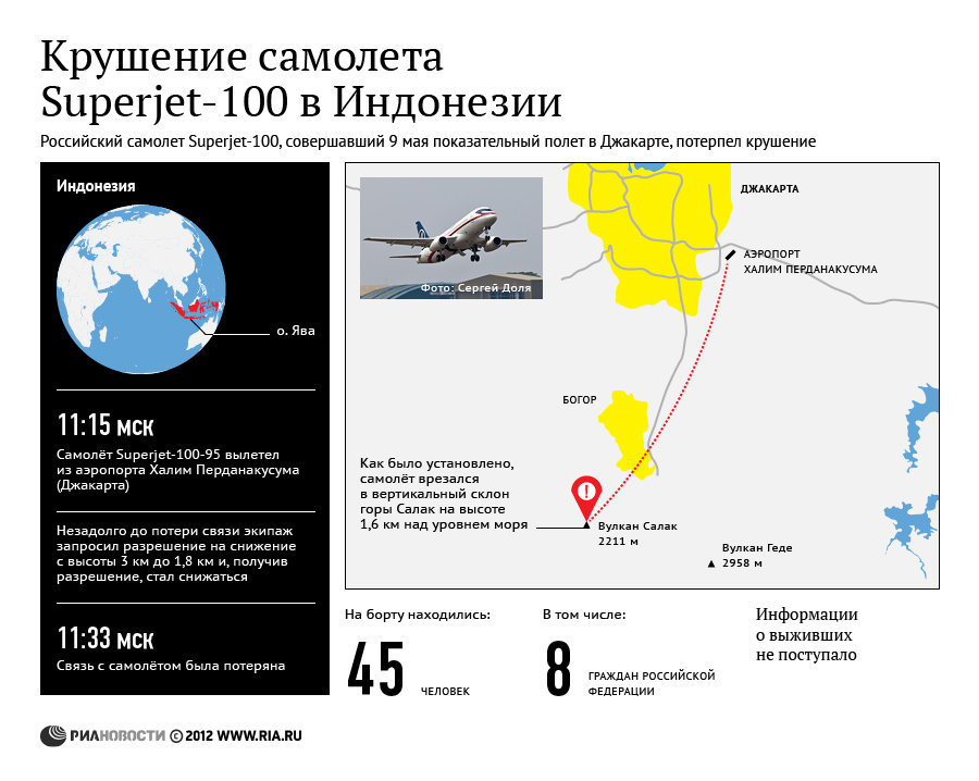 В Индонезии исчез с локаторов Самолёт Сухой-Суперджет-100