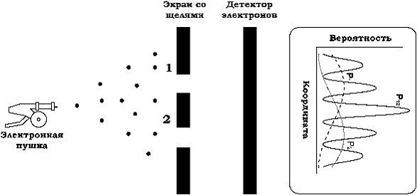 Неприменимость понятия траектории к микрочастицам. Прохождение электронов через две щели.