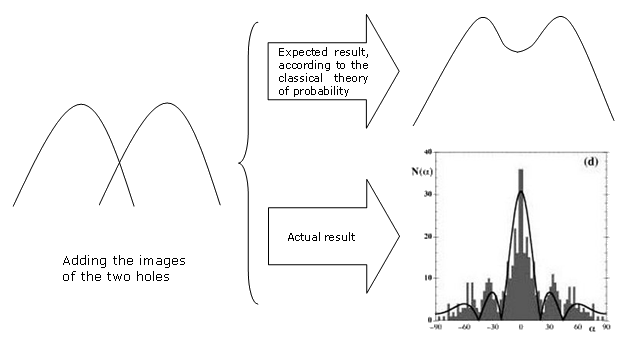 Тем не менее, в совокупности возникает интерференционная картина согласно законам квантовой механики.