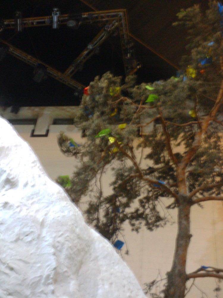 Разбрасывание проводилось с балкона третьего уровня. Сосна стоит сейчас вся такая новогодняя, в разноцветных бумажках (мы пытались сфотографировать мобильниками, но свет был выключен, и ничего не получилось).