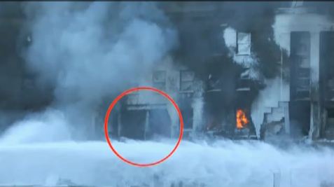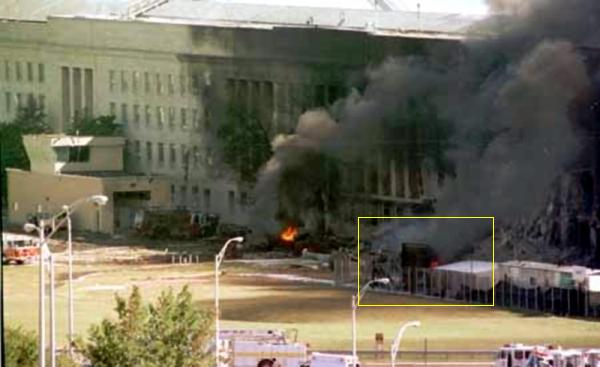 Здание Пентагона сразу после попадания ракеты (до обрушения пролета)