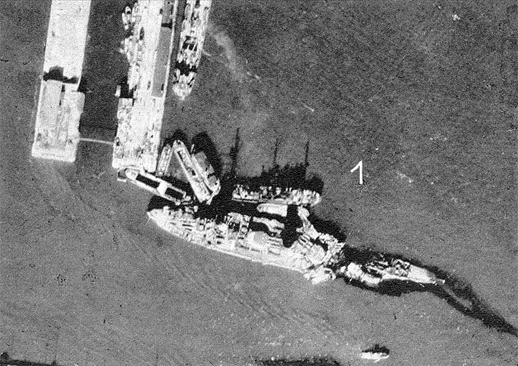Sowjetisches Schlachtschiff Marat — von Stukas zerstört