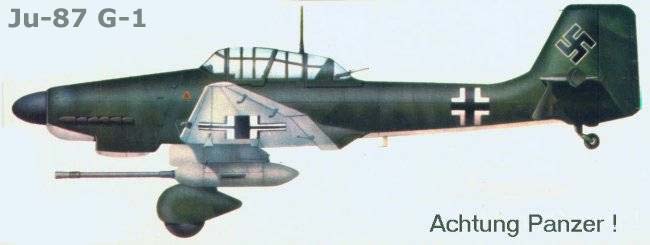 Еще в декабре 1942-го под обоими крыльями стандартного пикировщика Ju 87D-1 были смонтированы две 37-мм зенитные пушки FlaK 38, модифицированные в качестве противотанковых. Опытный образец самолета успешно прошел испытания на полигоне в Рехлине. Под новым обозначением Ju 87G-1 в феврале следующего года в пушечную модификацию переоборудовали несколько серийных бомбардировщиков Ju 87D-3. Опытная партия была немедленно направлена на Восточный фронт для проведения войсковых испытаний. Версия Ju 87G-2, появившаяся в это же время, возникла путем переоборудования модификации D-5 (последняя отличалась наличием хорошего бронирования двигателя и кабины пилота).