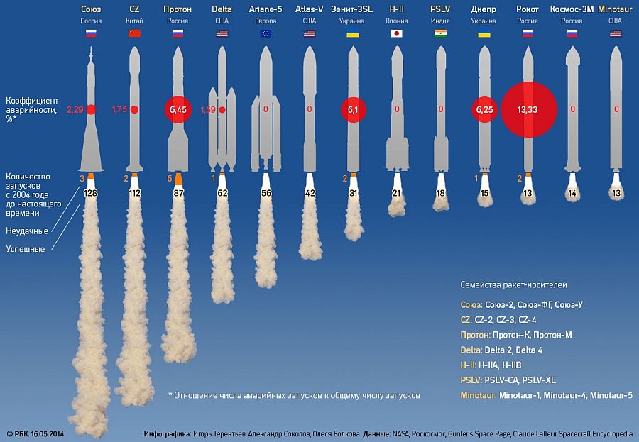 надо посмотреть бы на все пуски в т.ч и пилотируемые, особо выделить катастрофы при старте, при посадке, а то Вы сравниваете дельту с атласом с протоном, а если с мткк? И без протона. Вся статистика вещь жуликоватая в мелочах, если с взять с 1942 года статистику с фау начиная, что получится... Работай - не работай, всё -едино