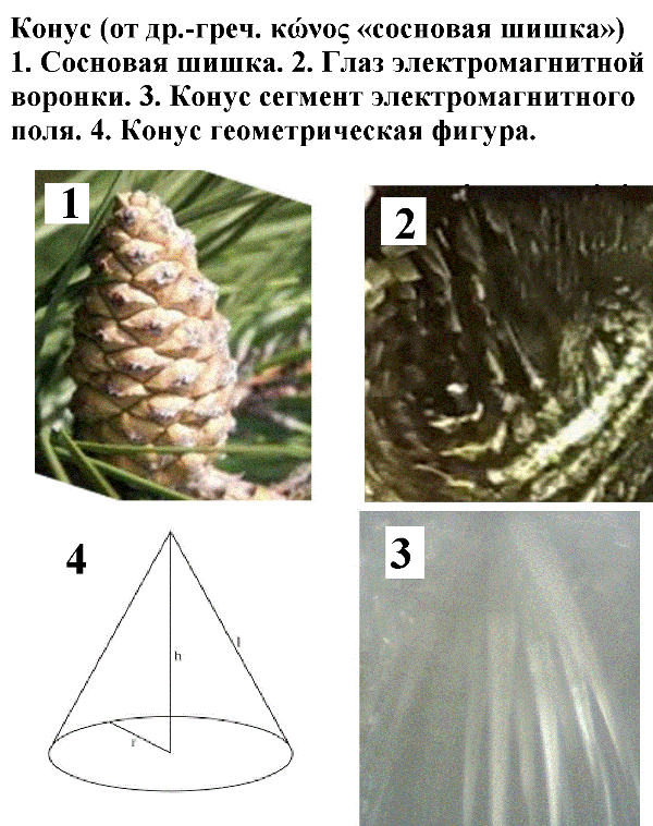 Ладно Изя, если вам трудно самому прочитать в учебнике определение конуса, то я сделаю это за Вас для Вас: Ко́нус — тело, полученное объединением всех лучей, исходящих из одной точки (вершины конуса) и проходящих через плоскую поверхность.