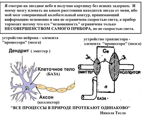 Я смотрю на звездное небо и получаю картинку без всяких задержек. Если кто то "тормозит", то это уже клиника. И моему мозгу плевать на каком расстоянии находится звезда от меня, потому что мой мозг совершенный колебательный контур, принимающий информацию мгновенно и она не ограничена скоростью света, а прибор тормозит потому что его "мгновенность" ограничена только НЕСОВЕРШЕНСТВОМ САМОГО ПРИБОРА, но не скоростью света.