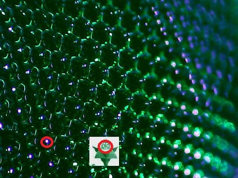 красным это "точка доступа" к тому, что Вы называете "энергоинформационное поле". Это не "блики", это реальные "фонарики". Кагбы узлы решетки, через которые происходят все операции. Каждый узел центр основания выше стоящей соты, и так далее.