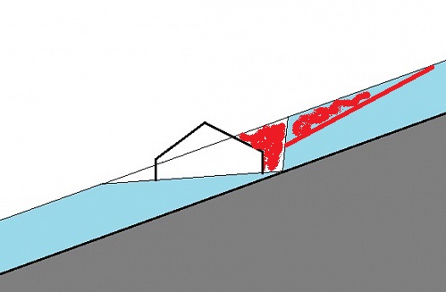 Гряда являлась естественным снегоуловителем. Поэтому то они и закапывали тут палатку. Одновременно, по моему, она должна прикрывать это место от подвижек снега сверху.