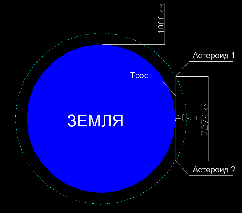 Теперь вопрос как это парировать, если предположить, что масса троса пренебрежительно мала по отношению к массе астероидов.