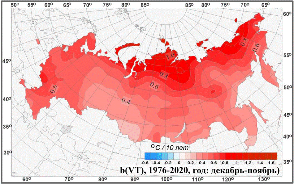 Тренд говорит о потеплении; а средняя температура - около  -15, что и предсказывалось ранее)
