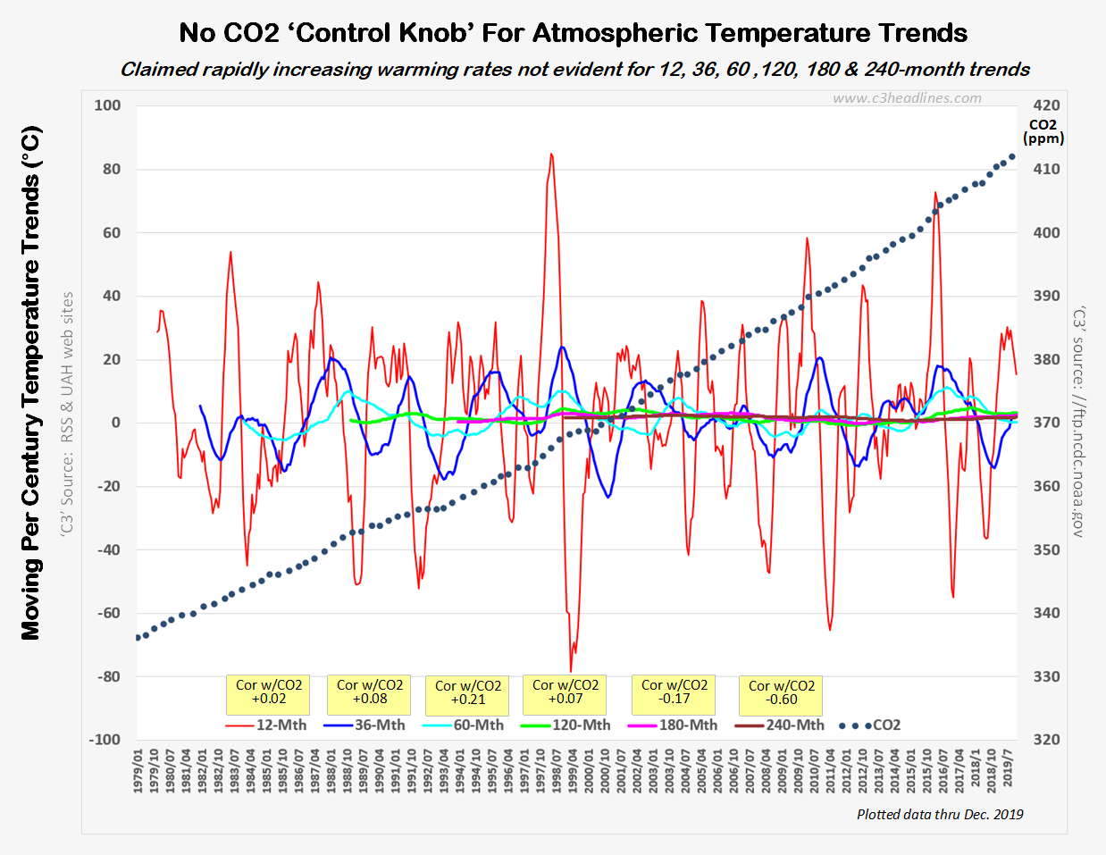 А зря подробности не смотрели — в той статье есть файл .xlsx в котором видно — что и как автор этой статьи считал. Там НЕ тренд средней температуры за 6 месяцев. На этом же сайте есть ещё одна статья 2020 года с названием 30+ Years After Claiming That CO2 Was The 'Control Knob' For Planetary Temperatures It's Still M.I.A. и картинка там ещё интереснее: