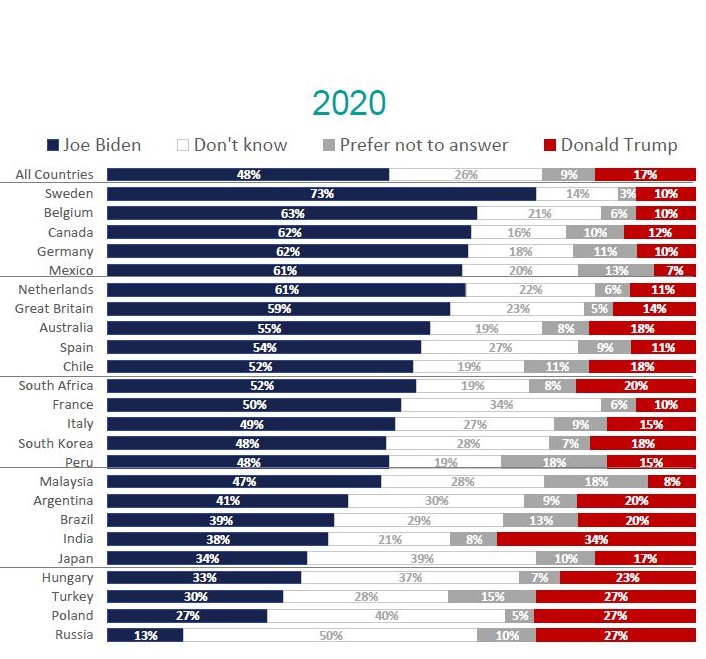 вот как голосовал бы остальной мир на выборах в юса - если бы можно было. для большинства людей трамп - не более чем реликтовое чудище, выползшее из неведомой норы и которое надо поскорее закопать обратно. ну кроме оссиян конечно;  для них эта мерзопакость - свое , родное почти, по крайней мере очень похожее-понятное на свое родное дерьмо