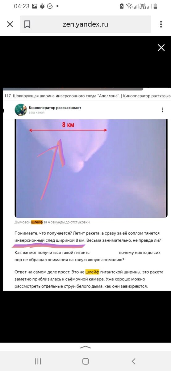 Да этого кинопроявитель думал, что инверсионный след идёт от старта и до окончания полёта.