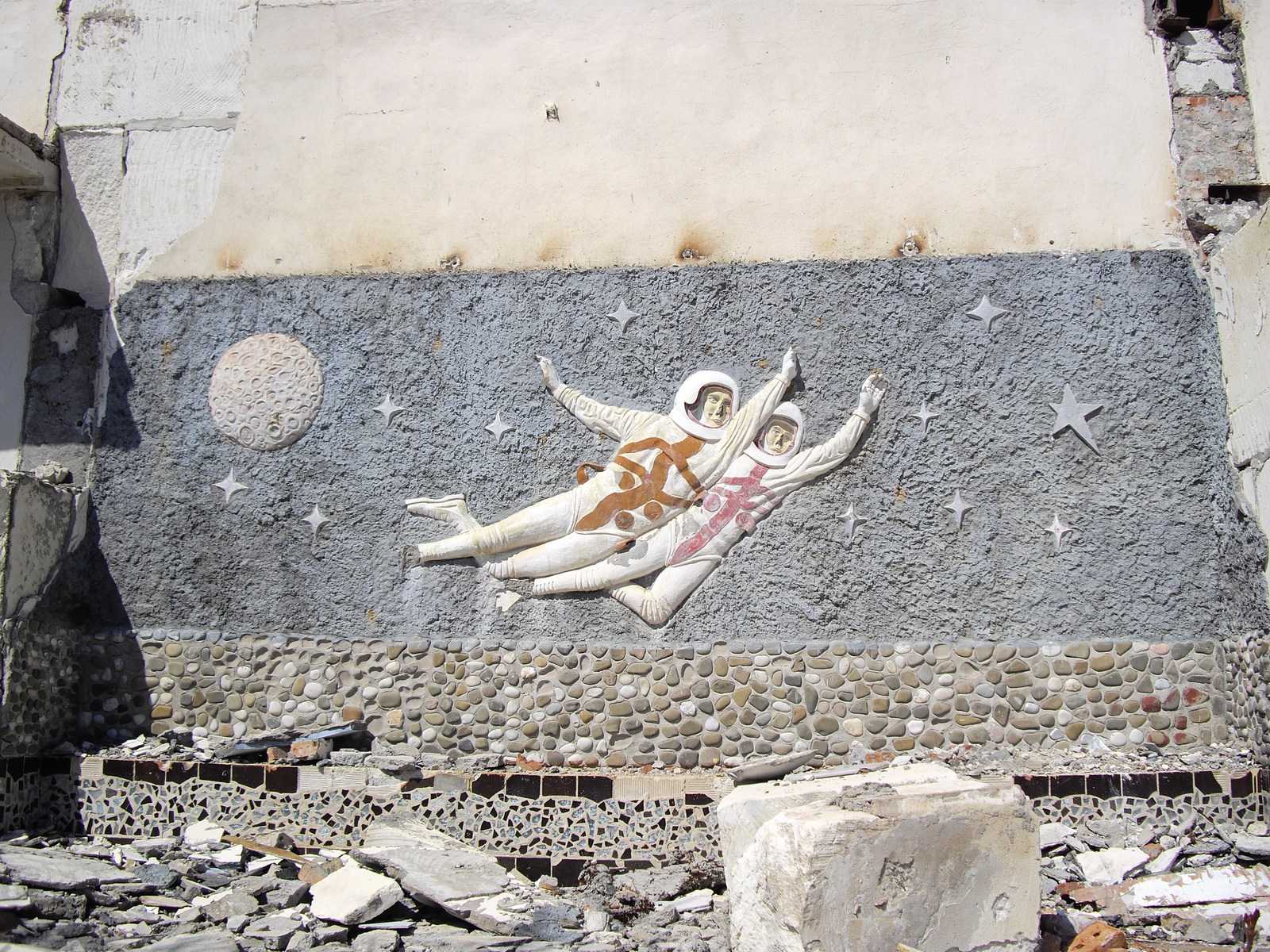 Где то, в столовой кажется, там была стена с парящим космонавтом.