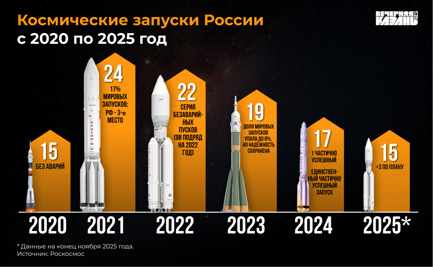 150 успешных пусков ракет-носителей подряд начиная с осени 2018 года!