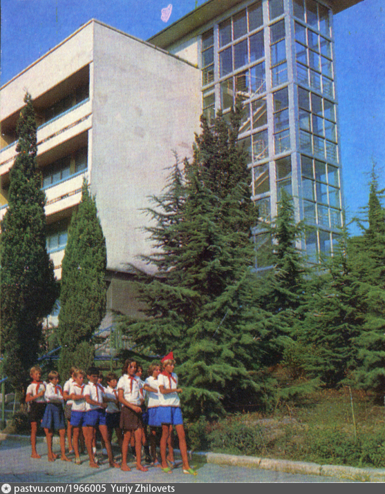 2. Представленная фотография - это территория санатория "Крым", который был построен в 1974 году и являлся военным санаторием МО СССР, никаких пионерлагерей на этой территории сроду не было. Он расположен у подножия Аю-Дага на территории Партенитской долины и имеет адрес - пгт Партенит (городской округ Алушта), ул. Санаторная, 1.