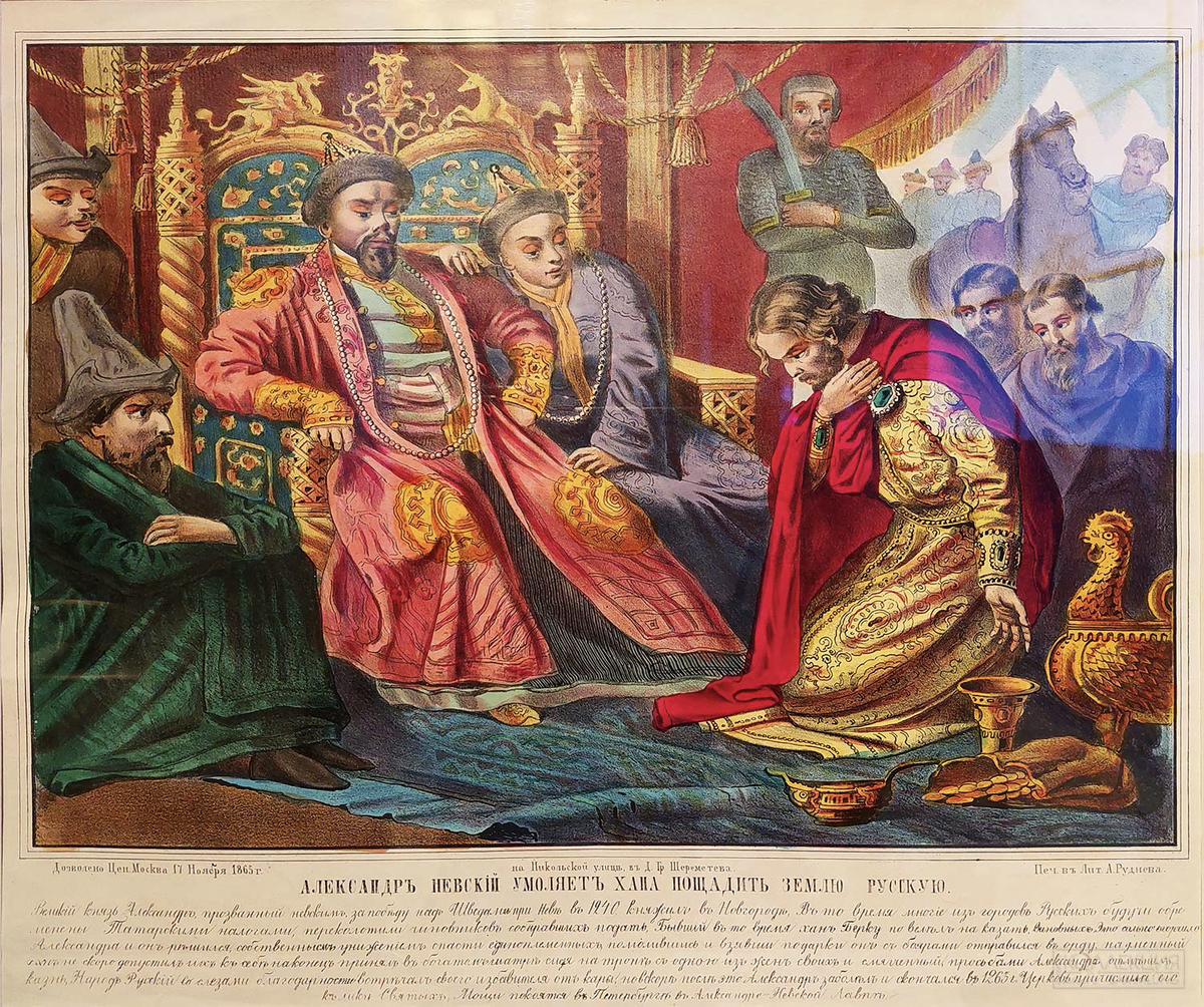 А если летописцы пишут, что хан принимал князя в шатре, художники будут рисовать шатёр. И даже специально рисовать лошадиные морды в открытом пологе. А если в Библии написано, что царь Соломон принимал царицу Савскую во дворце, то будут рисовать дворец. А поскольку ни Соломана, ни царицы, ни дворца в реальности не существовало вообще, то простор воображению обеспечен. Но никто не нарисует их в шатре (хотя, скорее всего, тогда даже цари жили в шатрах)