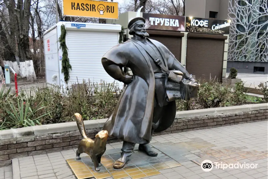 У нас в Ростове гладят кота у ног коробейника (на Садовой)