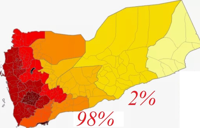 Чтоб было понятно - зелёным - это хуситы, а остальное - их противники и бОльшая часть - правительство Йемена