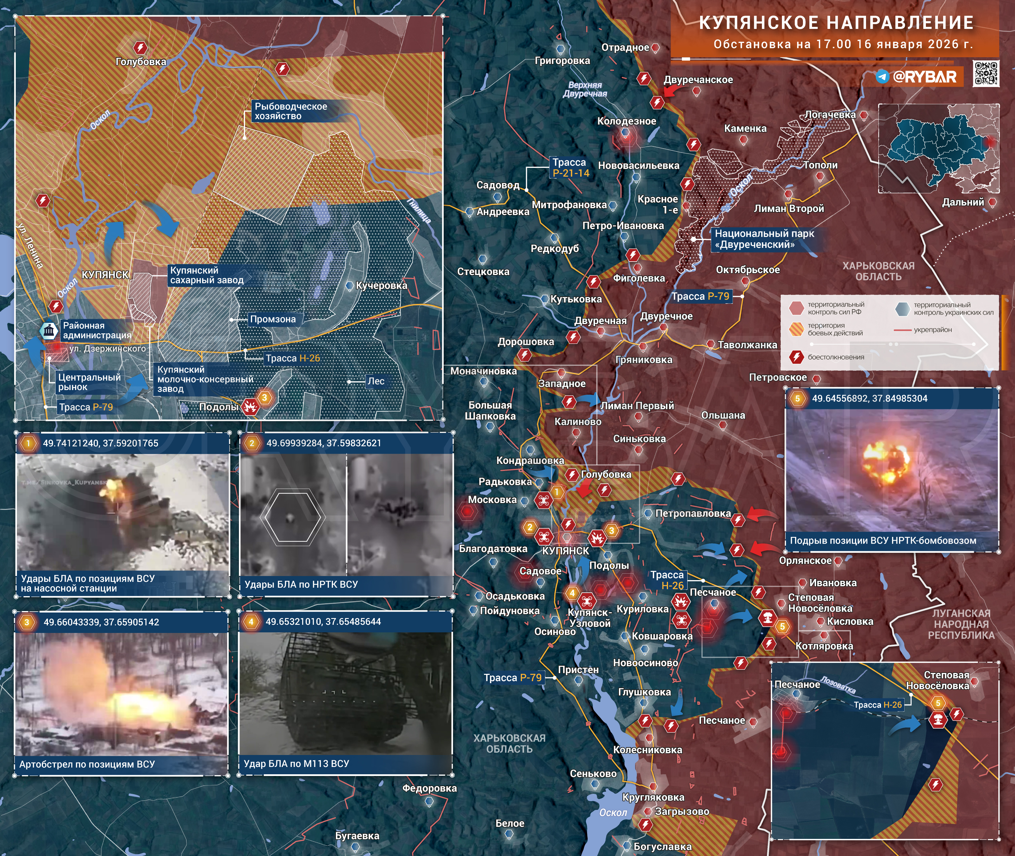 Сегодня начальник Генерального штаба Вооруженных сил России Валерий Герасимов сообщил об освобождении города Купянск-Узловой. Последняя по времени карта Рыбаря, относящаяся к Купянскому направлению, была от 16 января. На ней Купянск-Узловой еще находился под уверенным контролем ВСУ: