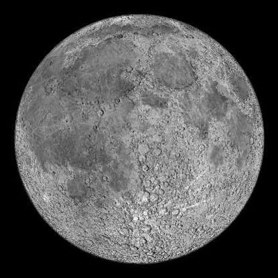 Солнце Луну освещает слева, а тени кратеров показаны при освещении справа.