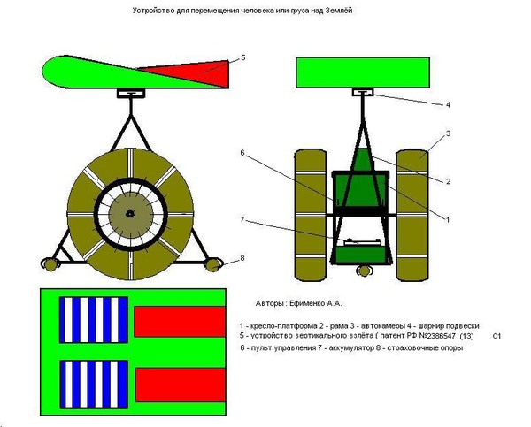 Это компановачная принципиальная схема экспериментального устройства для тренинга инвалидов, предназначеного для обучения полётам на высоте 1-2 м над Землёй.73