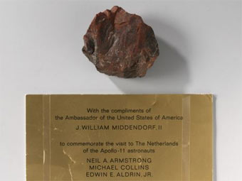 Экспонат был передан премьер-министру Голландии послом США в этой стране. Посол, в свою очередь, получил камень от астронавтов миссии "Аполлон-11" вскоре после их возвращения с Луны в 1969 году. После смерти премьер-министра камень отошел музею. Он был застрахован на сумму 500 тысяч долларов.
